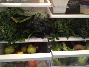 This is just one of many things you can stuff those lovely collards with! As previously mentioned, I made a version of the linked Collard Wraps with Raw Sunflower Pate as well, and I look forward to trying more wraps with these goodies. I even used Rainbow Chard for wraps, and they’re equally (and surprisingly) delicious. My Sunflower Pate Collard Wraps are pictured on the left. Its green because I mixed in some yummy greens with the soaked sunflowers. Remember that refrigerator full above? Have to do something with them!
