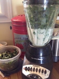 1c unsweetened vanilla almond milk1/2 bunch kale, chopped