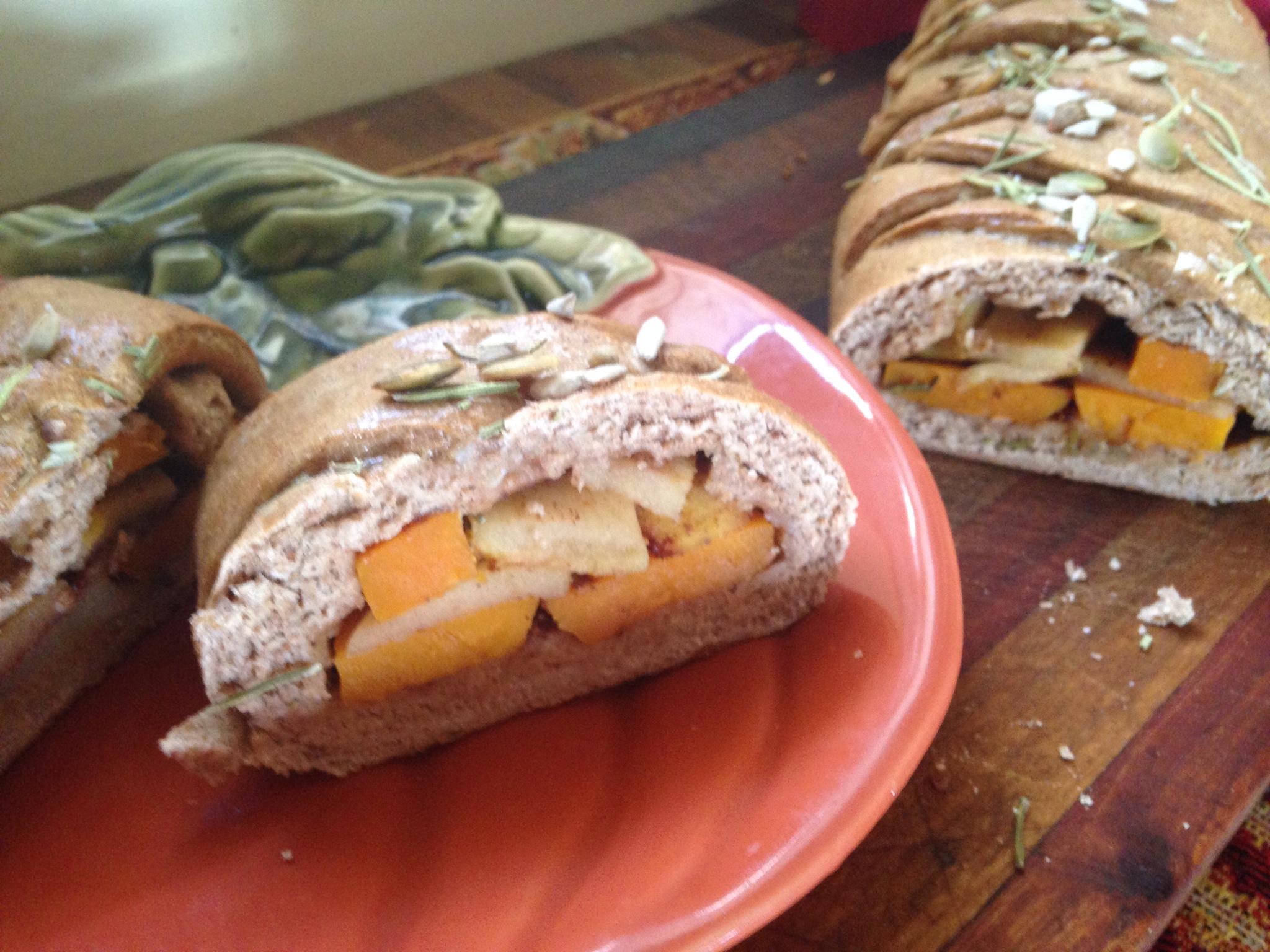 This picture is of my first ever Savory Sweet Autumn Bread! I adapted this recipe from Eat-Live-Run’s Apple Braid, incorporating butternut squash and some savory spices as well.