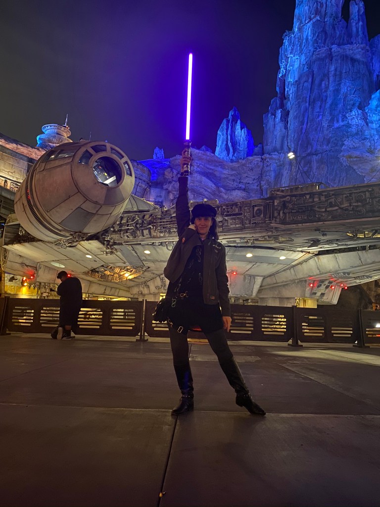 I’m part of the Star Wars generation. I saw Star Wars: A New Hope in the theaters in 1977 when I was 7 years old, so it felt as if I had been waiting 43 years for this experience. It was one of the greatest weeks of my life. I drank blue milk, delighted in intergalactic street food, met Chewbacca, was recruited for the Resistance, and relaxed after a full day of fighting the Empire at the Cantina over a drink called the “Jedi Mind Trick.” My partner and I reveled in fighting for the Resistance by “hacking” ships, droids, and buildings through an interactive game on Disney’s special iPhone app. Stormtroopers marched through the city with Kylo Ren questioning people, and while it was fun to play the part, it also hit a little close to home with the way the country has been moving in the past four years. It made for some interesting political discussions where we expressed out concerns for our future.