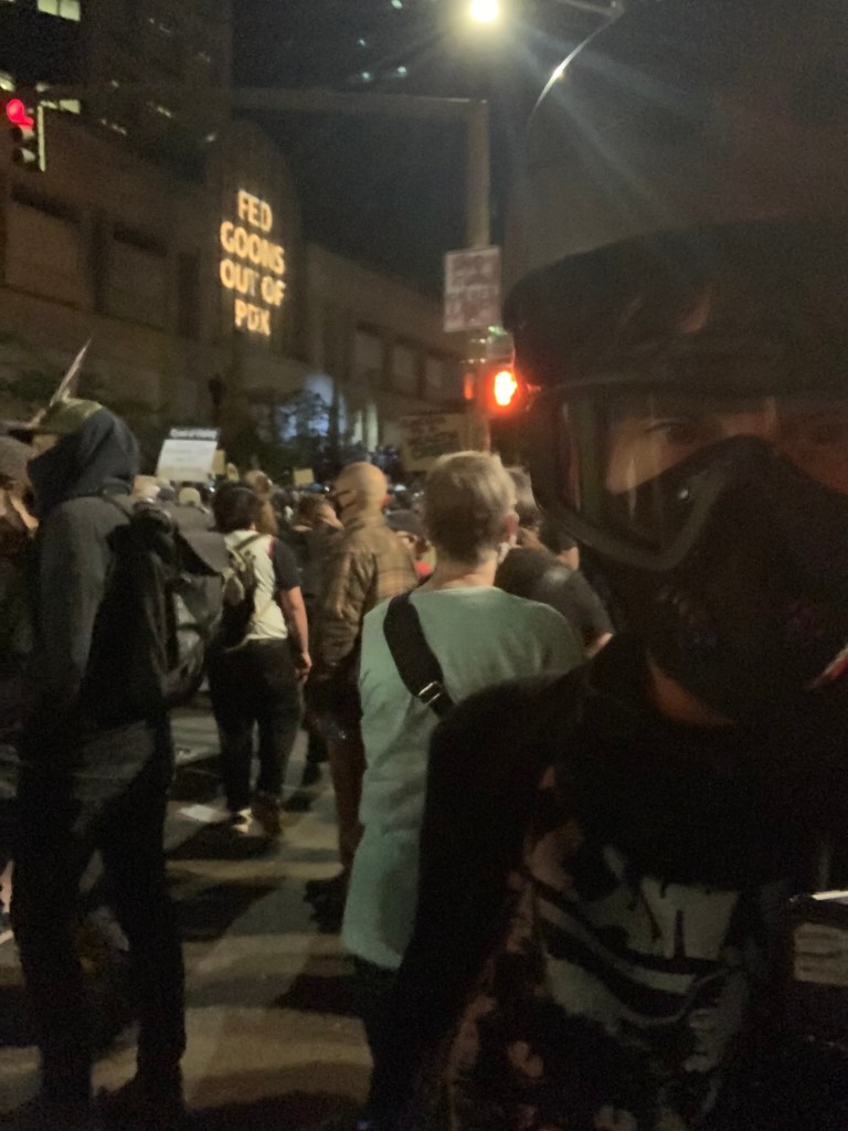 On the 63rd night, July 30th, when the State Police arrived to start the takeover from the Feds, the officers didn’t engage. It was the first night Portlanders were able to protest in peace, without any violence, because the police weren’t out to perpetrate it. The same peaceful atmosphere extended to July 31, 2020, marking only the second night free from police brutality in 64 days.