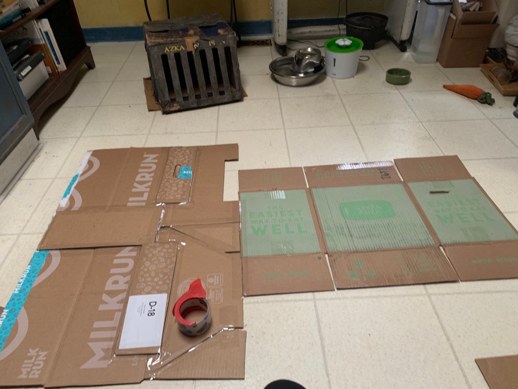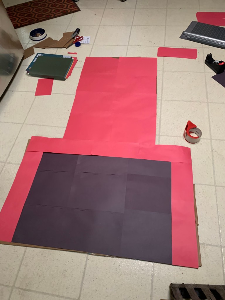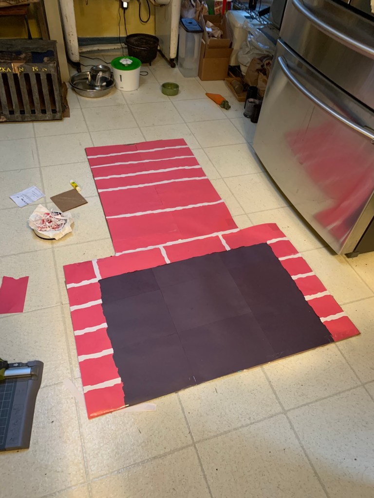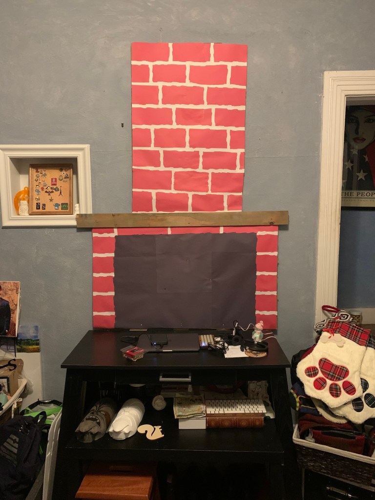 This year, I wanted to do something festive and creative! I decided to make my own fireplace out of construction paper and cardboard, as those materials worked so well for a Trump wig in my parody video!