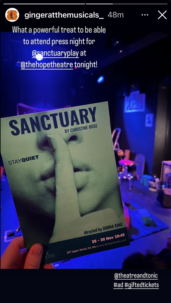 Tickets can be booked via The Hope Theatre’s website—don’t miss your chance to experience Sanctuary.