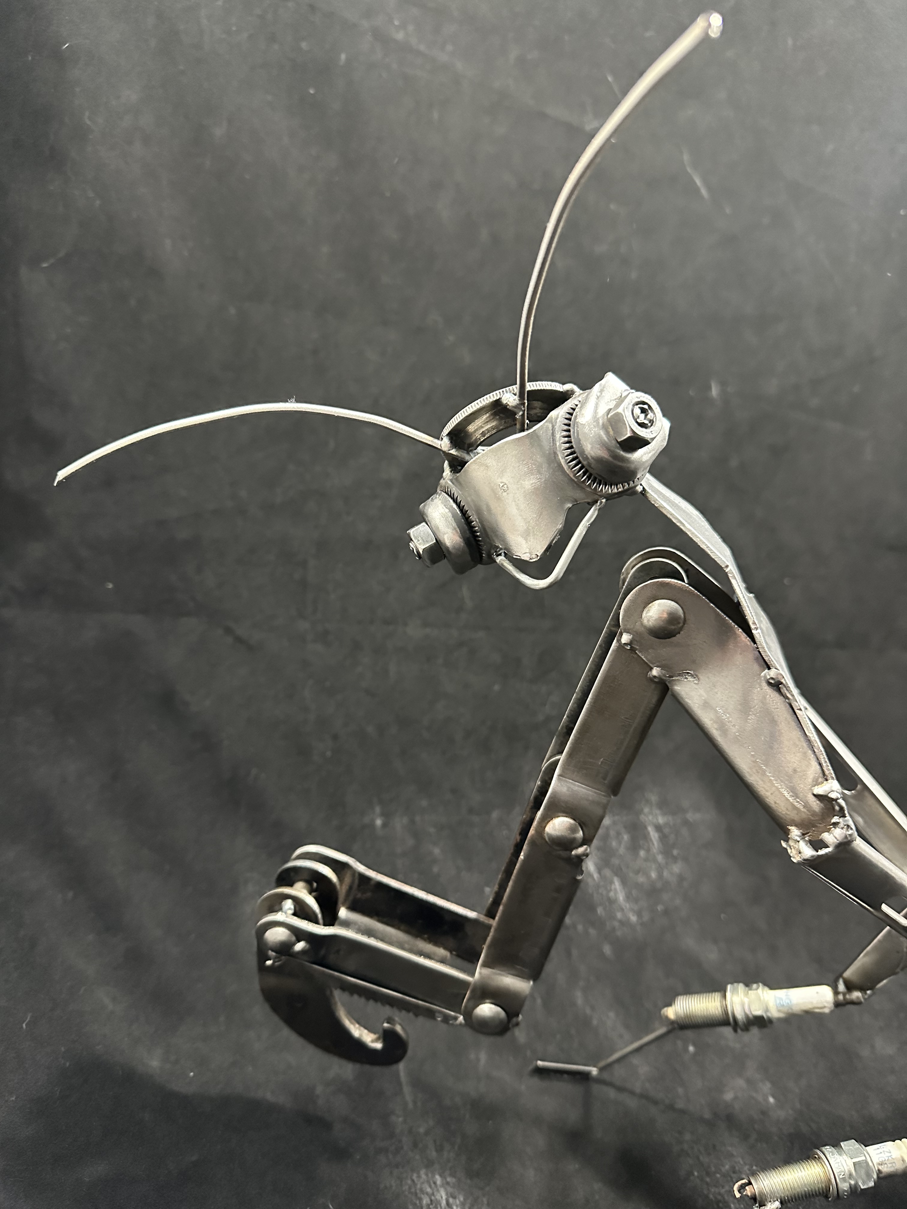 Forged from fragments of steel and instinct, Feminism captures the ruthless grace of the praying mantis — a creature both revered and reviled for its brutal honesty in nature’s design. Her body arcs in quiet poise, the moment before devotion turns to devouring. Every joint gleams with tension, every curve a reminder that power can be elegant, and beauty can bite.