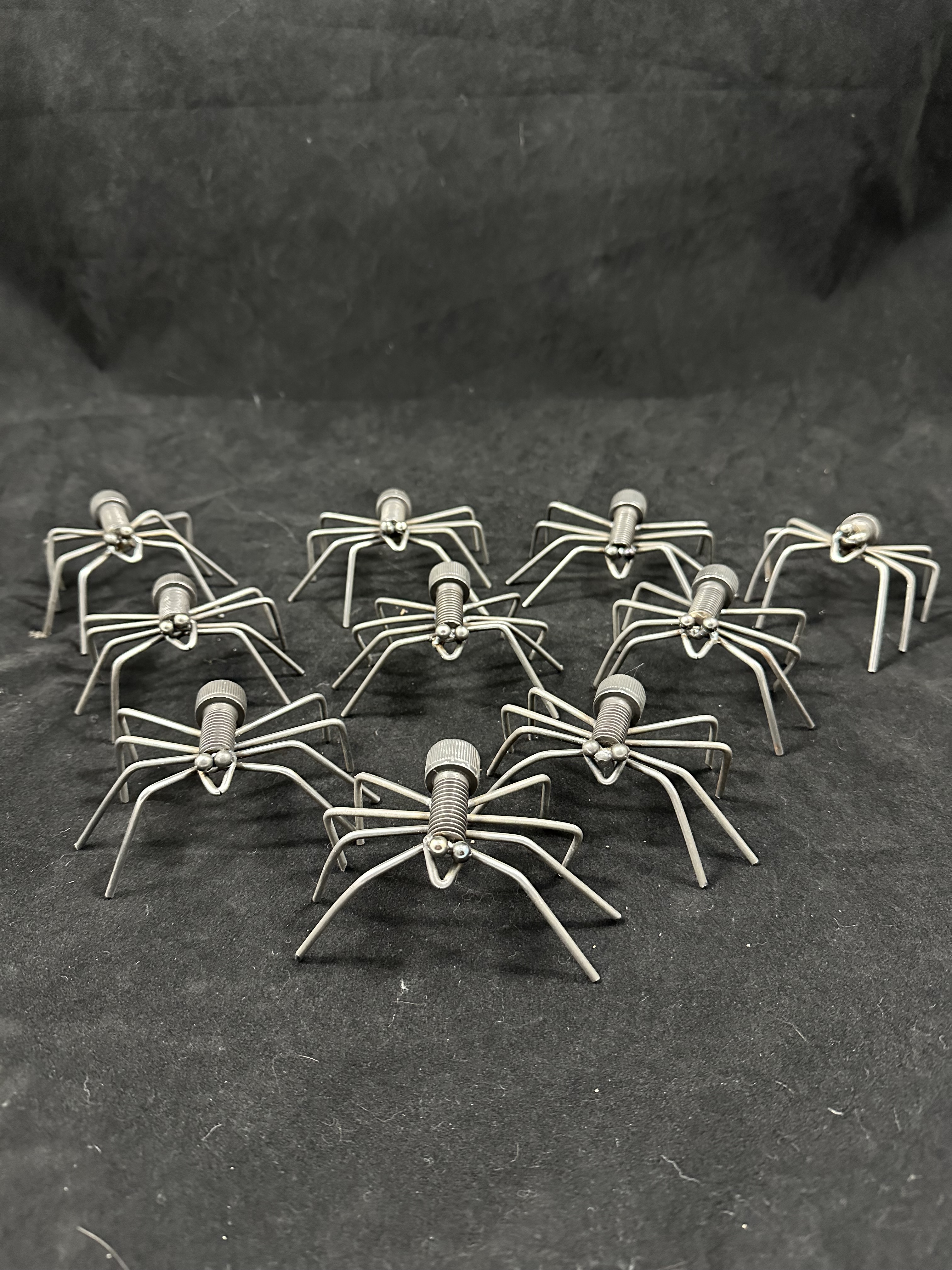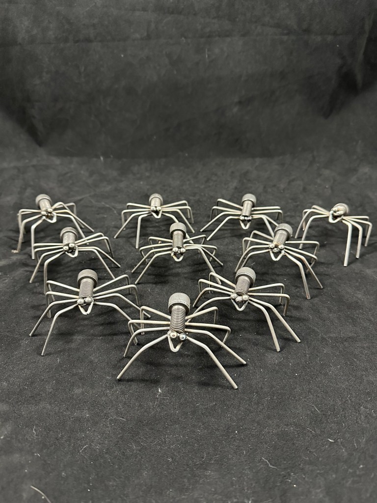 According to old folktales, spiders wove the first tinsel when the world was new. Each one of these reclaimed-metal creatures carries a thread of that myth — a little glimmer of Midwinter magic twisted into steel.
